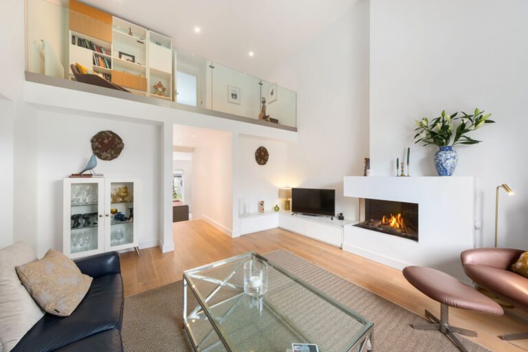 • Double height living room with large, Victorian style window.