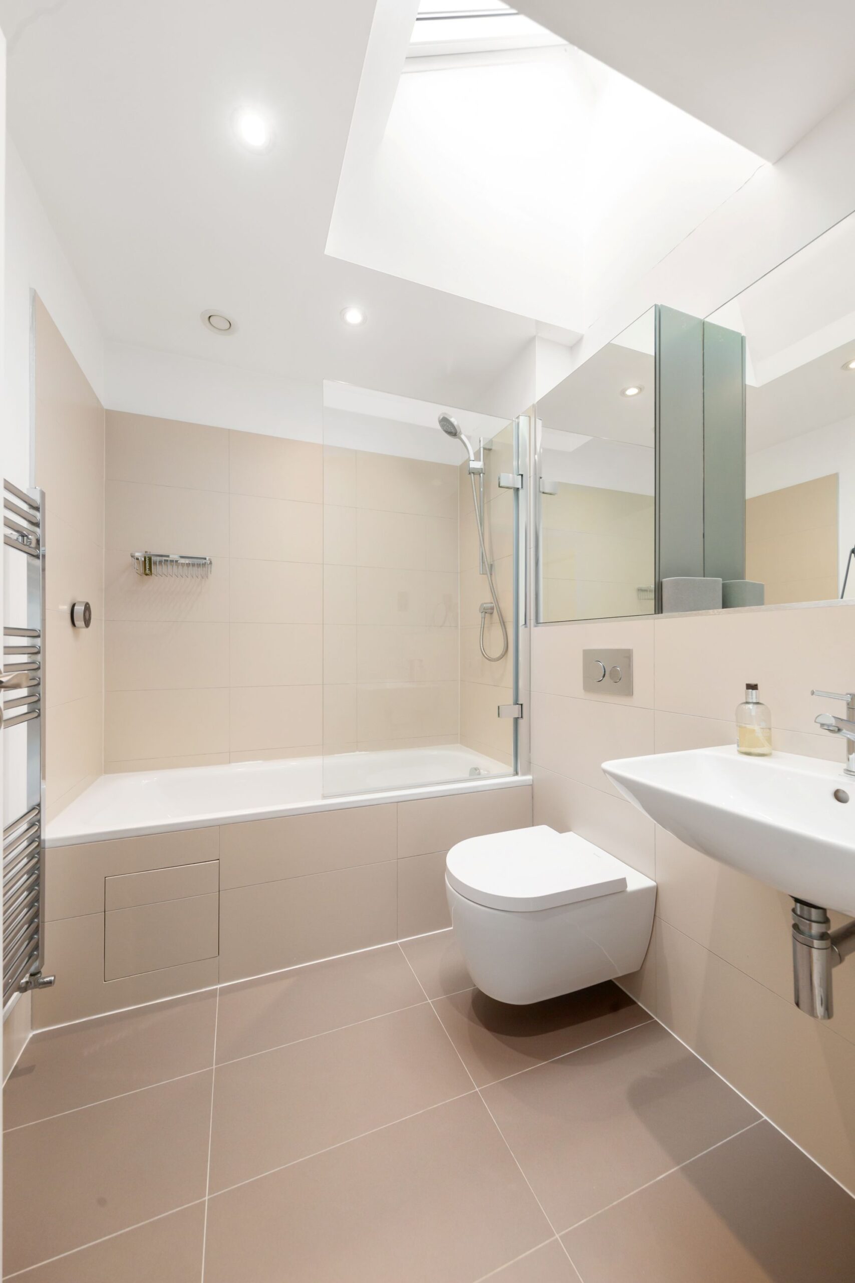 o Mirror fronted integrated cabinets with built-in vanity storage.